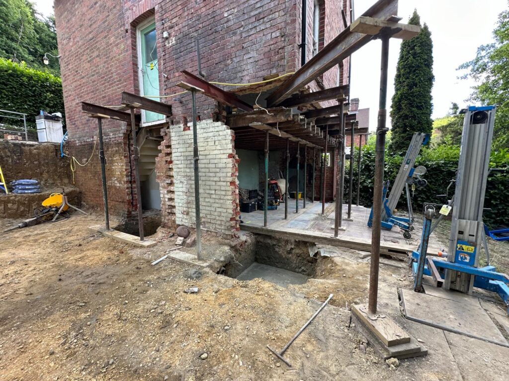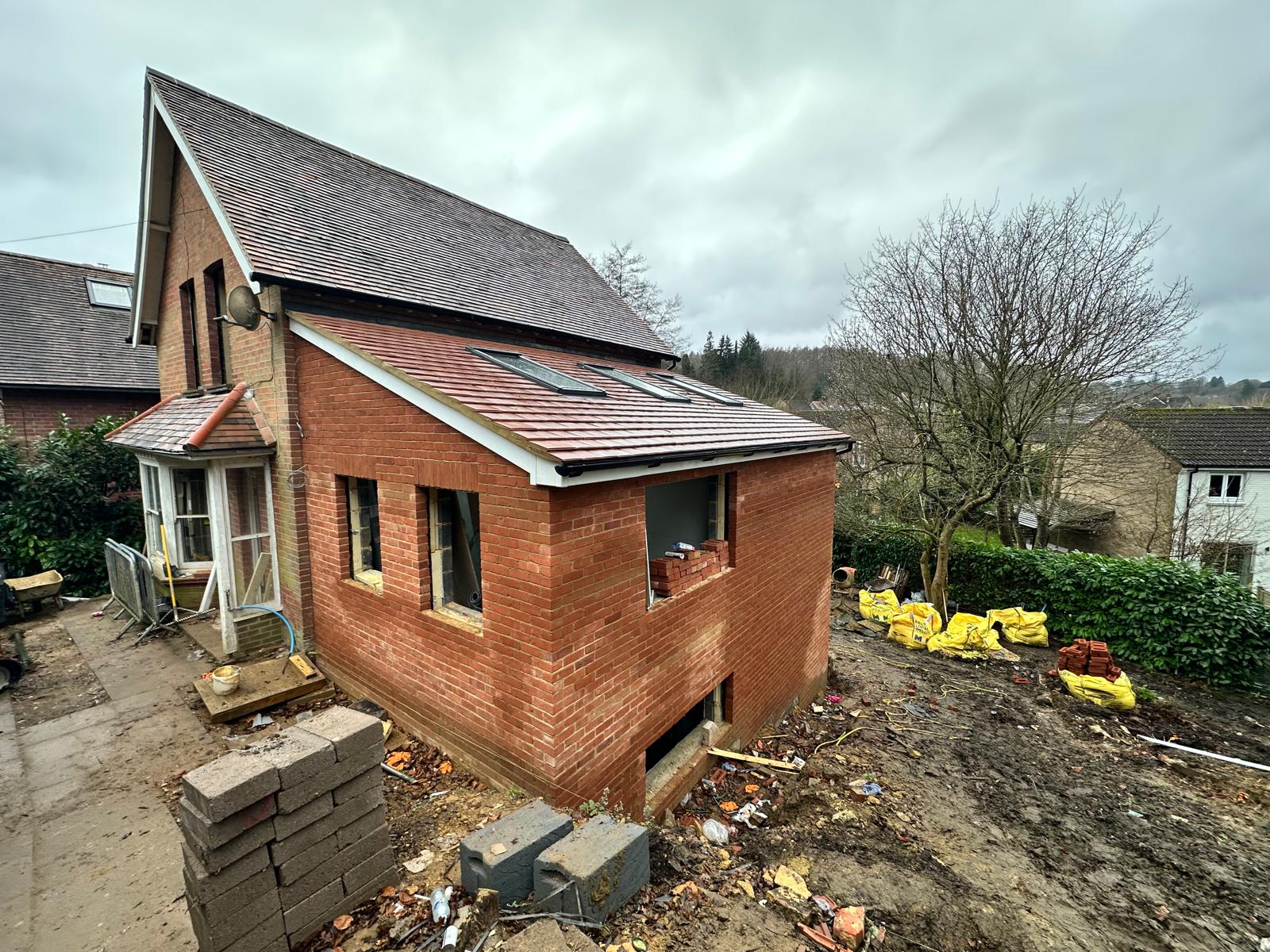 In progress: Two-storey rear extension with open-plan ground floor, extended bedrooms, and new side dormer.