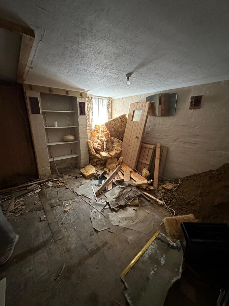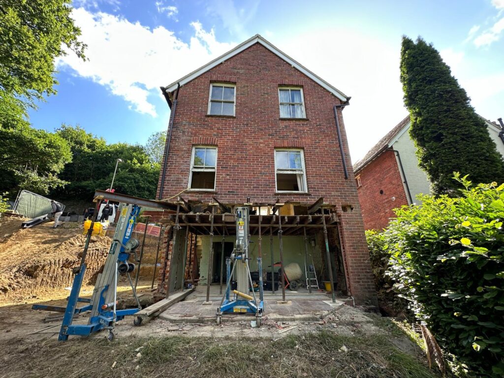 A recently purchased 3 storey property that was left to rack and ruin, our client wanted to completely overhaul the property, gutting it back to it 4 external walls. This project included the build of a 2-storey side extension that required underpinning foundations, as the property is situated on a hill, to construct a new basement, basement waterproofing system, a single storey rear extension with large central skylight, reorganisation of the houses layout, 3 new bathrooms, a large utility room, open plan kitchen diner, 4 bedrooms, new study and Gym space.